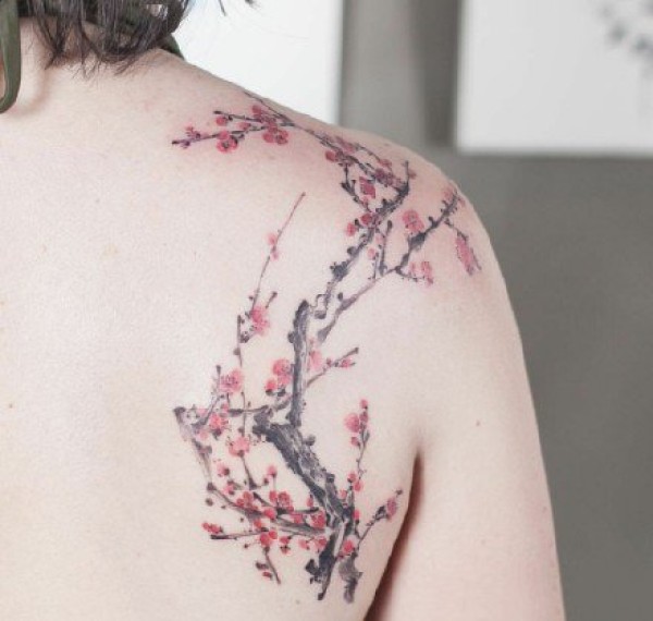 纹身梅花图 一组玫瑰等传统小清新花卉纹身图片