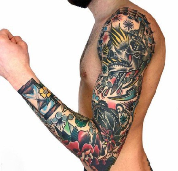 传统风格的一组男性花臂和花腿纹身图案欣赏