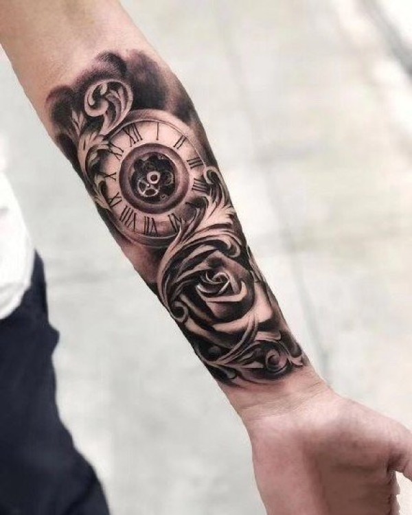 女性手臂上漂亮的玫瑰花纹身图案