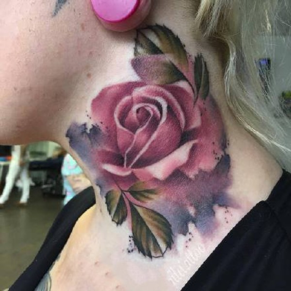 粉玫瑰纹身 水彩色风格的粉色玫瑰纹身图案