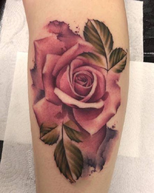 粉玫瑰纹身 水彩色风格的粉色玫瑰纹身图案