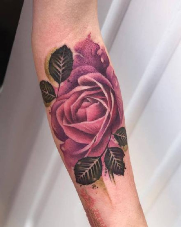 粉玫瑰纹身 水彩色风格的粉色玫瑰纹身图案