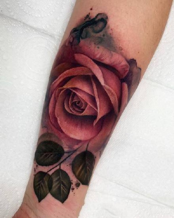 粉玫瑰纹身 水彩色风格的粉色玫瑰纹身图案
