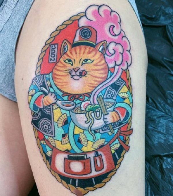 日式传统风格的老鼠和猫等彩色纹身图