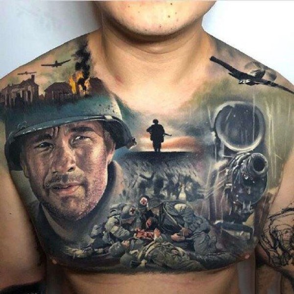 9张男性胸部逼真的3d立体个性纹身图案
