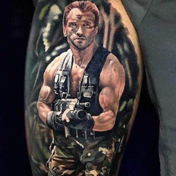 欧美黑灰写实纹身:大臂和大腿上逼真的欧美3d写实纹身图案