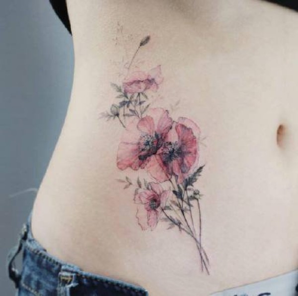 罂粟花纹身图--几张红色艳丽的唯美罂粟花纹身图案作品