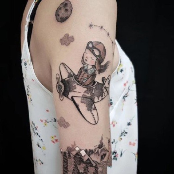 27张可爱美丽的卡通小女孩--纹身师rikkiiies的纹身图案作品