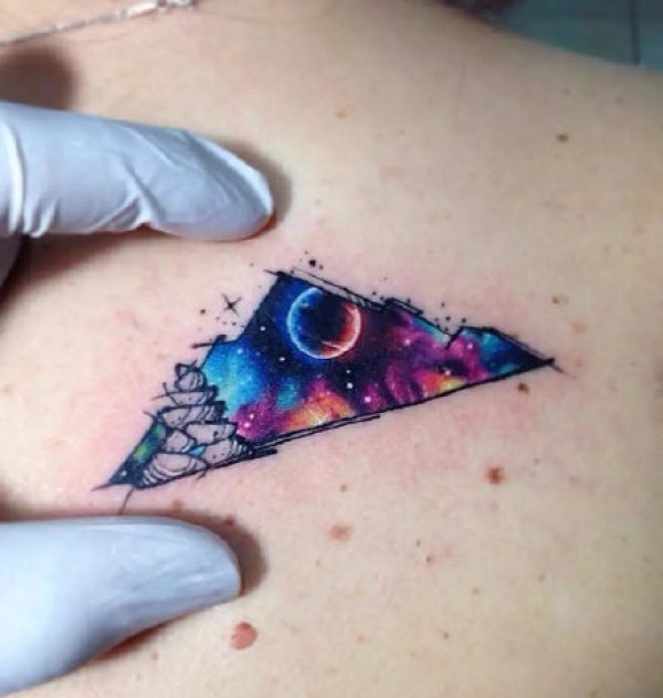 一组炫彩色星空星球宇宙相关的纹身图案作品