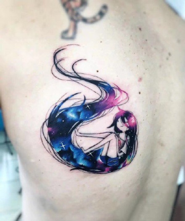 一组炫彩色星空星球宇宙相关的纹身图案作品