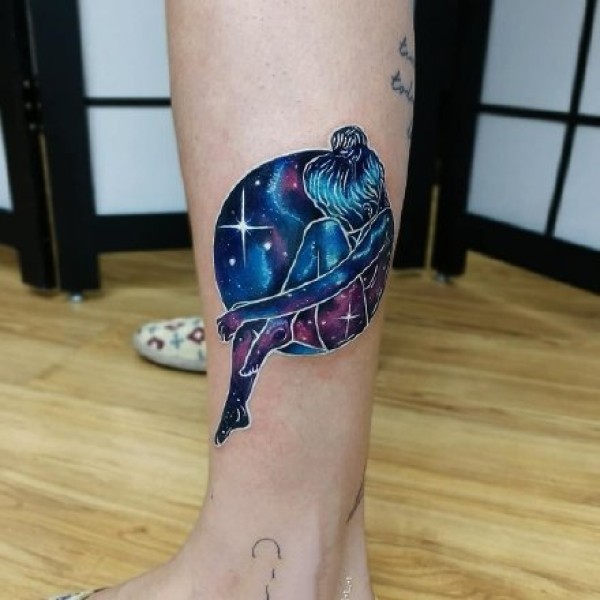 一组炫彩色星空星球宇宙相关的纹身图案作品