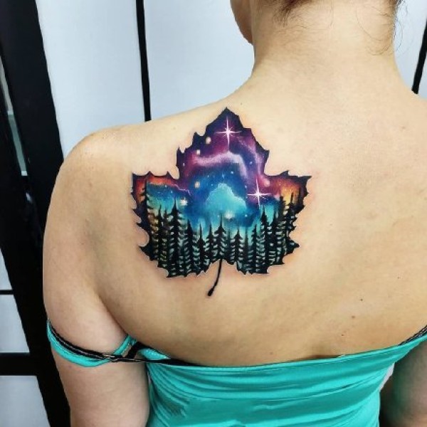 一组炫彩色星空星球宇宙相关的纹身图案作品