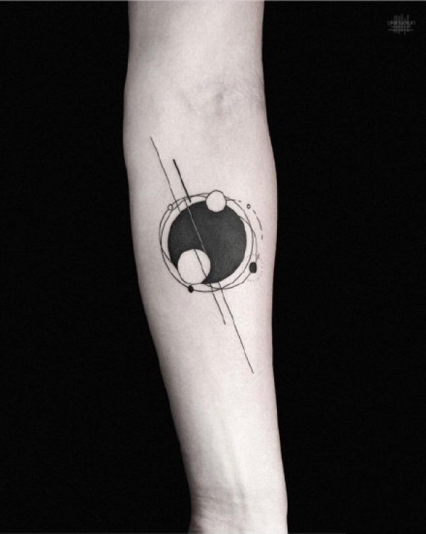 胳膊上极简风格的几何线条纹身图片
