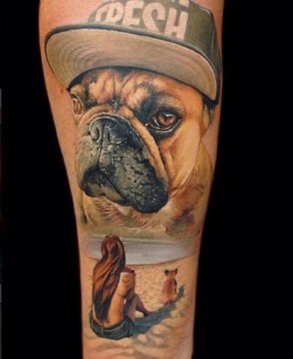潮流纹身-色彩可爱的小猫小狗手臂纹身图片