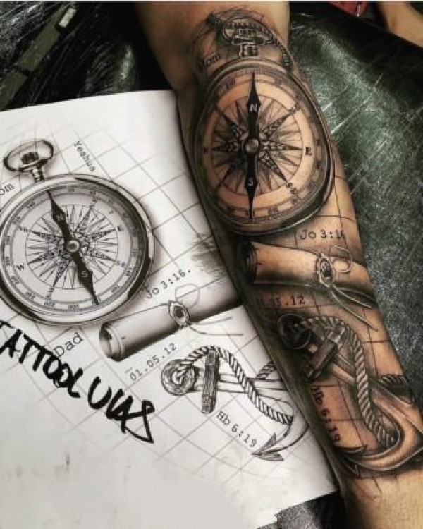 指南针主题的一组钟表纹身图案