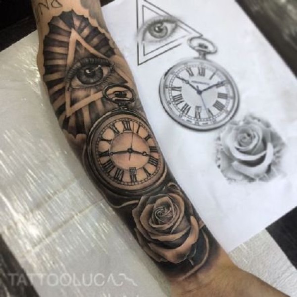 小臂钟表纹身 18款欧美风格包臂钟表纹身图案