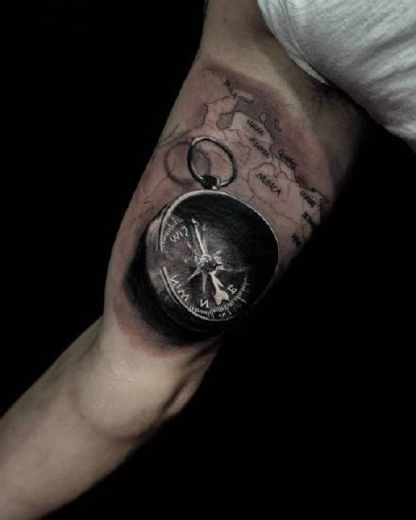 指南针主题的一组钟表纹身图案
