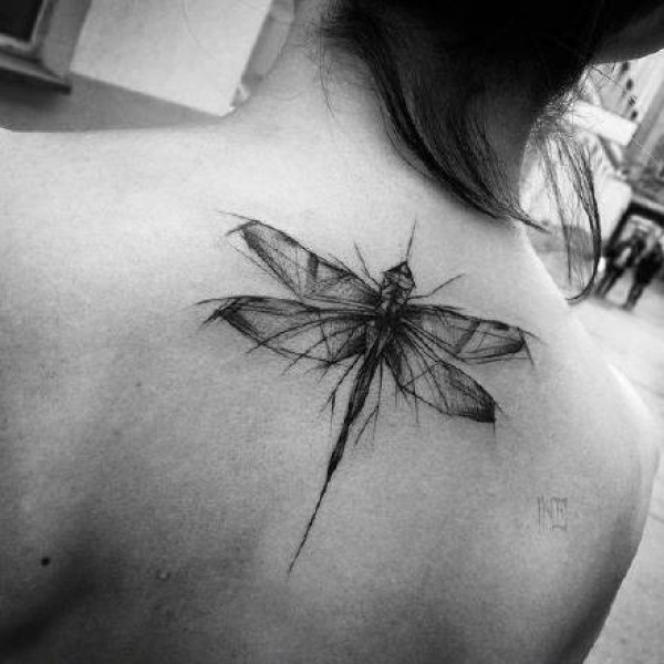 蜻蜓纹身 9款小清新的黑灰色蜻蜓线条纹身图案