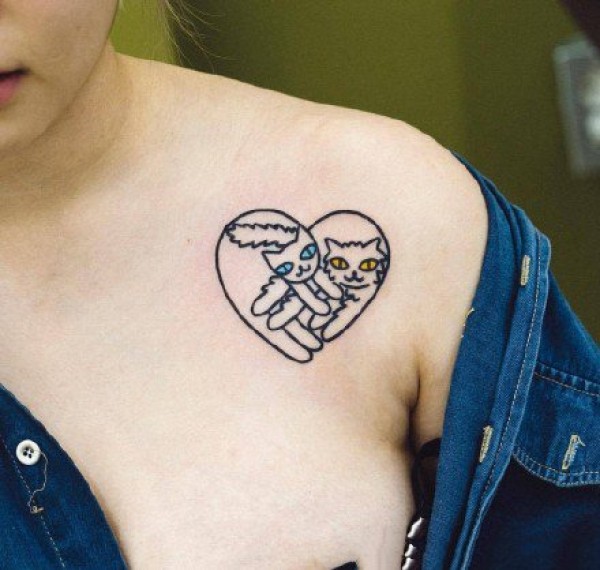心形猫咪纹身--一组oldschool风格的猫咪主题心形纹身图案