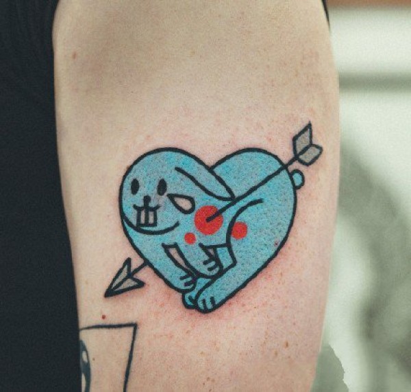 女生锁骨下黑灰素描点刺技巧创意比心纹身图片