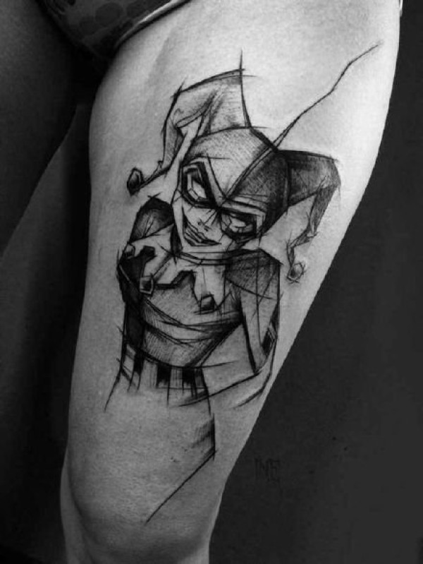 点线纹身 设计感极强的写实与抽象结合的纹身图片