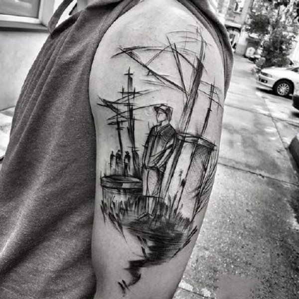 来自法国艺术家的创意人物点线设计纹身图案