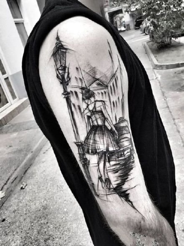 来自法国艺术家的创意人物点线设计纹身图案