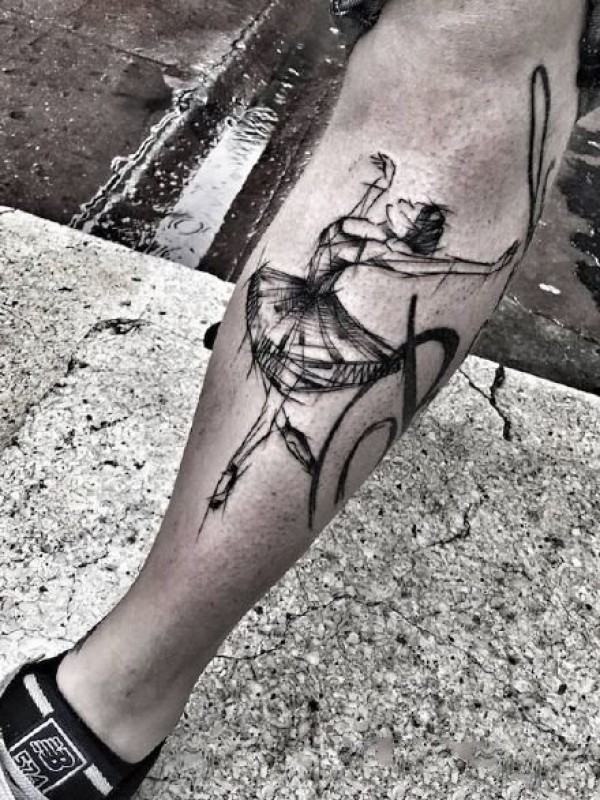 点线纹身 设计感极强的写实与抽象结合的纹身图片