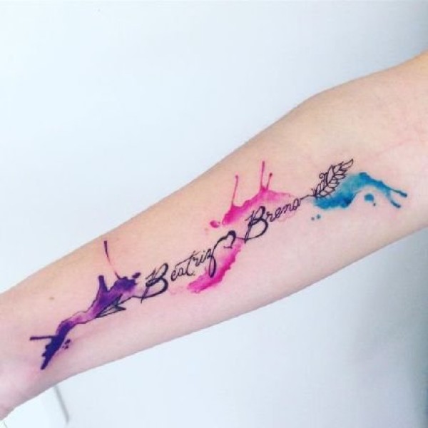 花朵英文纹身 好看的一组英文字母和水彩花朵搭配的纹身图案