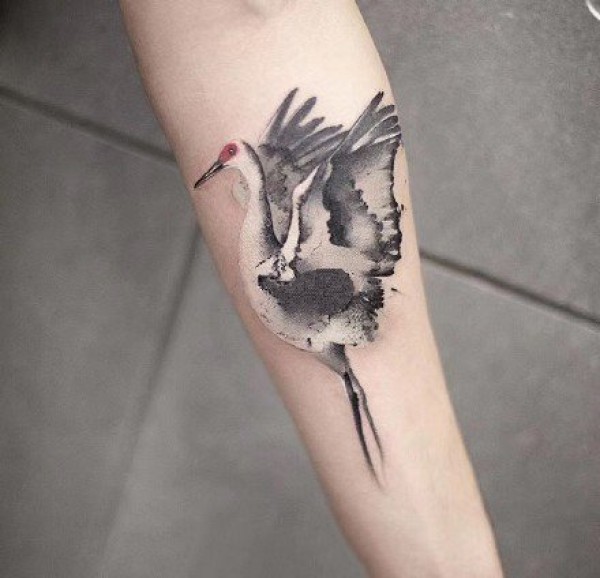 仙鹤纹身 9张水墨中国风的仙鹤纹身图片