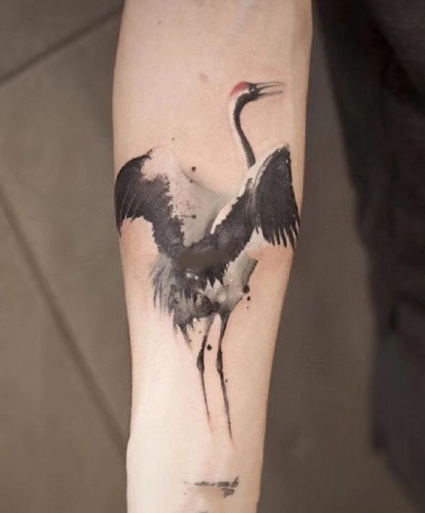 仙鹤纹身 9张水墨中国风的仙鹤纹身图片