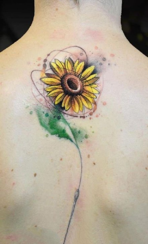 向日葵纹身图片 女生后背上彩色的向日葵纹身图片