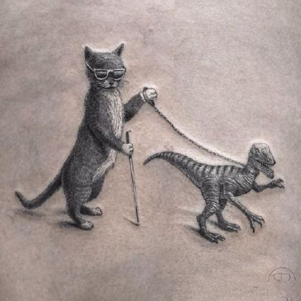 德国恐龙纹身 女生大腿上德国恐龙纹身图片