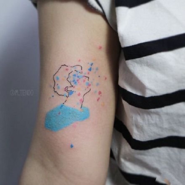 手臂臂环纹身和赤裸天使,蓝色羽翼