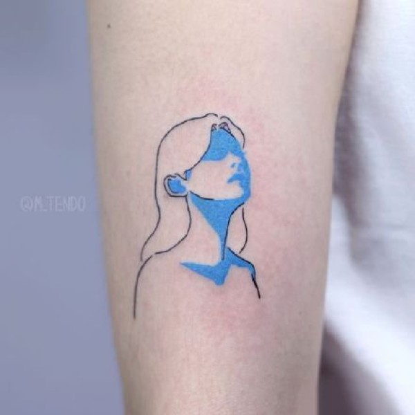 蓝色调的一组人像轮廓小纹身图片