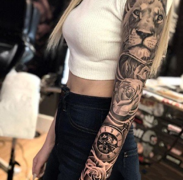 狮头虎头纹身 9组逼真的手臂包臂写实虎头和狮子头纹身图案