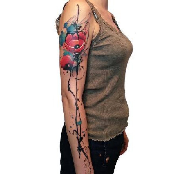 水彩纹身 9款手臂上抽象感觉的水彩风格纹身图案