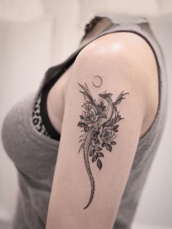 披肩龙纹身图案图片_龙纹身图案大全_纹身图吧