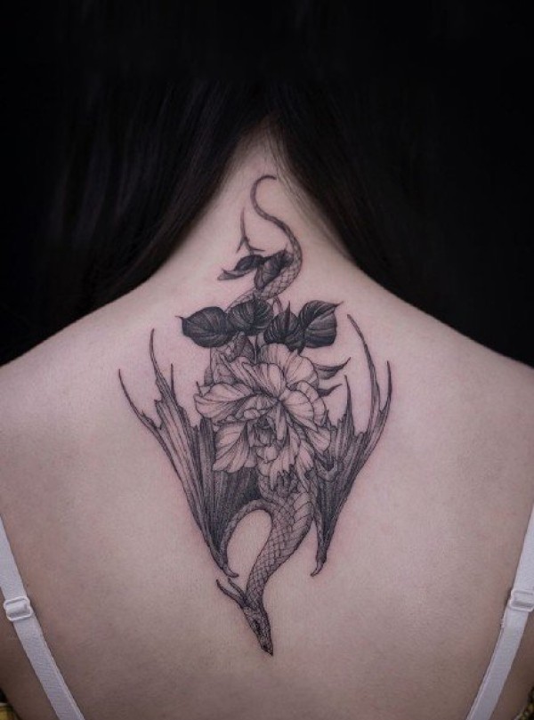 披肩龙纹身图案图片_龙纹身图案大全_纹身图吧
