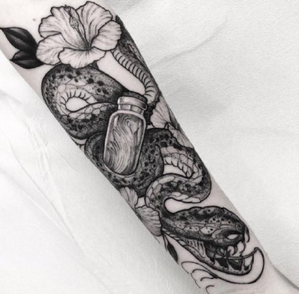 蛇纹身 18款好看的传统蛇纹身图案作品