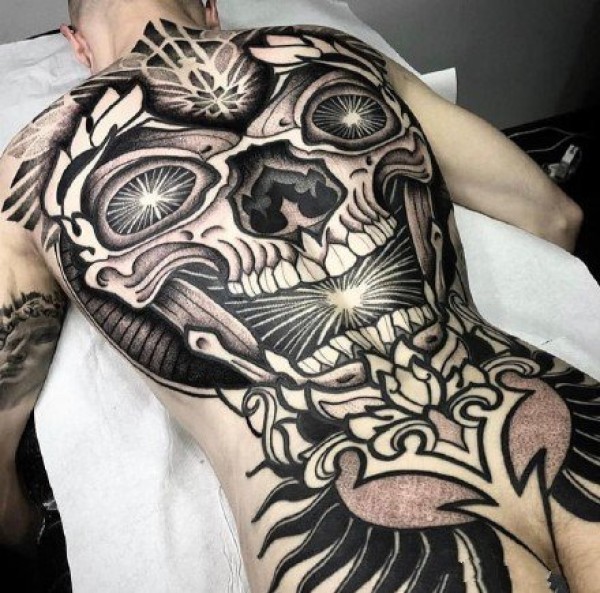 霸气黑灰纹身 帅气的9组大面积黑色点刺纹身图案