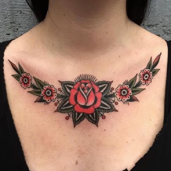 胸部花卉纹身 oldschool风格的9组花胸纹身图案
