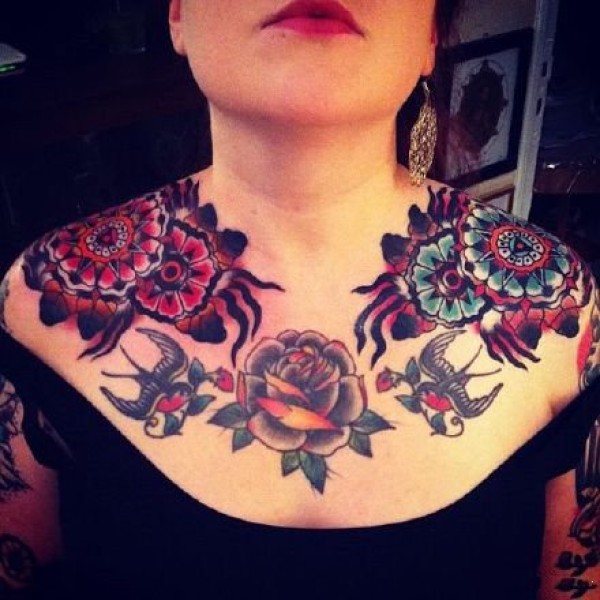 女性大花胸纹身_43张霸气漂亮的女性大花胸纹身图案作品