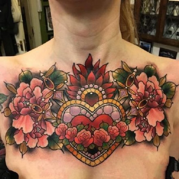 女性大花胸纹身_43张霸气漂亮的女性大花胸纹身图案作品