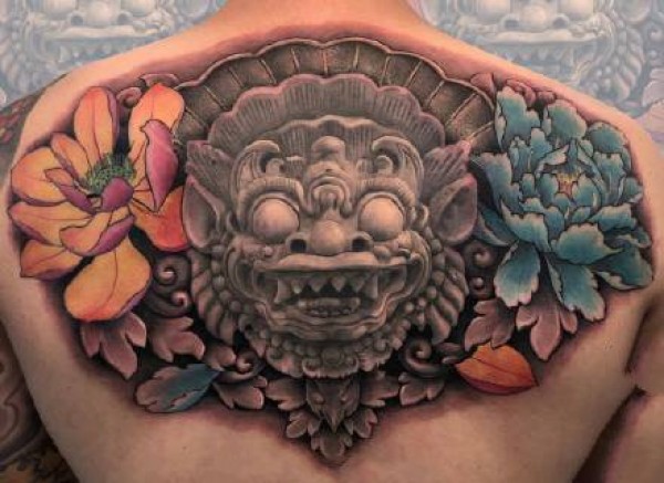 新传统风格的9张男性黑灰大满背纹身图案图片