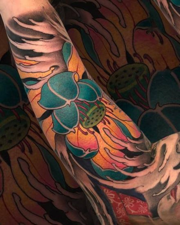 花朵纹身图案-20张身体各个部位传统彩绘纹身图案