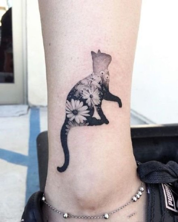黑色猫纹身 9款黑色的一组猫主题纹身图片