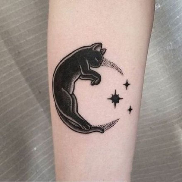 黑色猫纹身 9款黑色的一组猫主题纹身图片