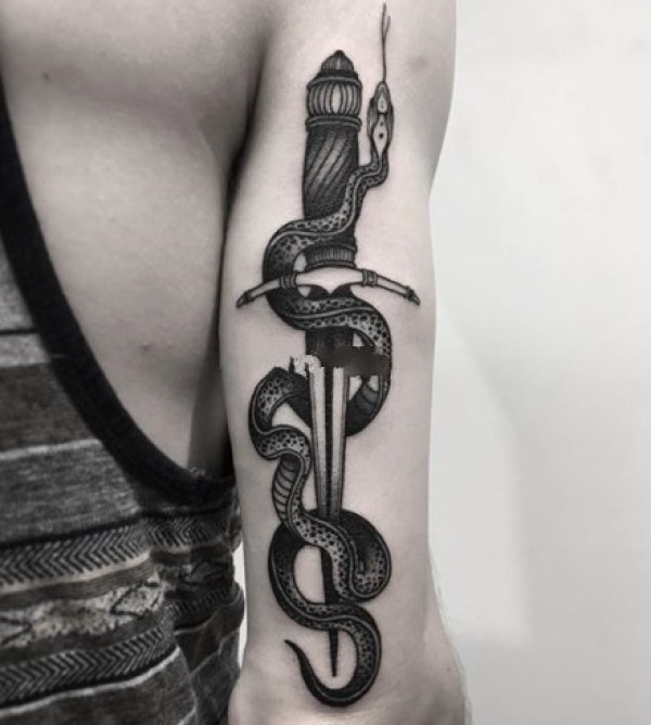 黑色小蛇纹身 9款兵器和小黑蛇搭配的纹身图案