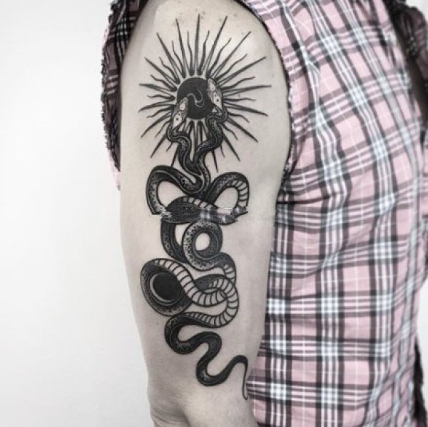 黑色小蛇纹身 9款兵器和小黑蛇搭配的纹身图案